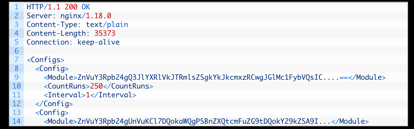 The images below depict two tasks that PowerTaskel executes with its C2 server. The first task checks for the presence of the file “ntuser.exe” in the %ProgramData% directory, and if it is not found, downloads it from the C2 server. The second task runs mshta.exe via ntuser.exe, which is actually a renamed PsExec utility.